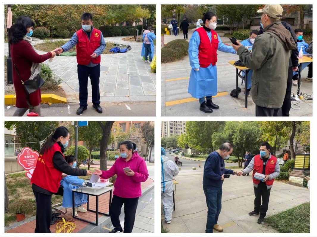 志愿服務(wù)暖人心。志愿者們準(zhǔn)時到達(dá)社區(qū)核酸采集點,在各個檢測點幫助維持秩序,引導(dǎo)群眾保持安全距離,有序檢測,幫助老年群眾注冊核酸檢測信息碼,發(fā)放核酸檢測貼紙,宣傳疫情防控法律法規(guī),針對群眾提出的各項疑問進行耐心解答。志愿者們在不同的崗位上履職盡責(zé),配合社區(qū)工作人員、醫(yī)務(wù)工作者明確分工、協(xié)調(diào)配合,大大提高了檢測效率,確保了社區(qū)按時完成全員核酸檢測工作。